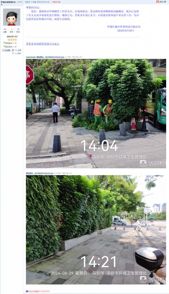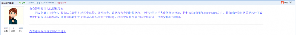 各职能单位如需对网友反映的问题进行回应,可在深圳论坛注册官方账号并通过认证,回帖进行回应。