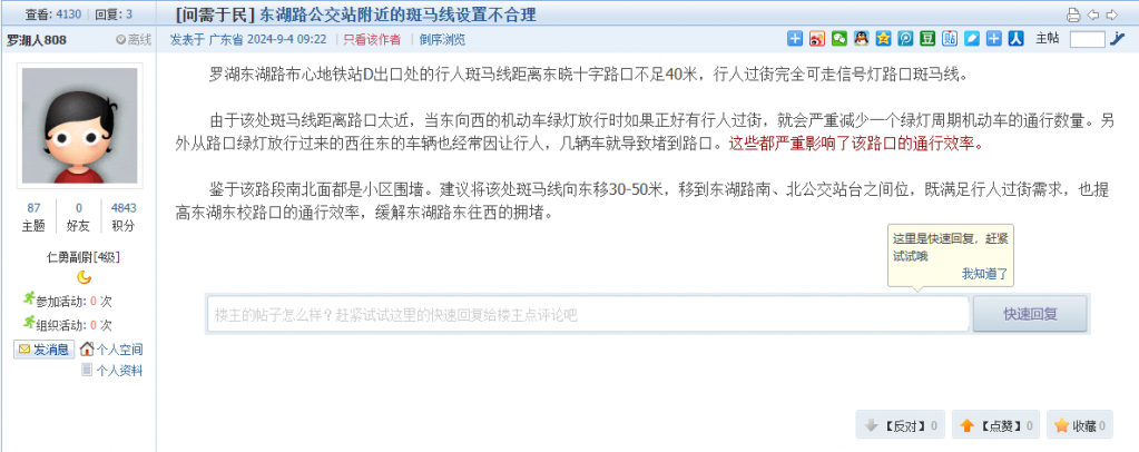 16. 帖文《东湖路公交站附近的斑马线设置不合理》