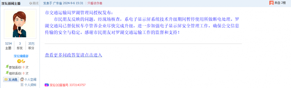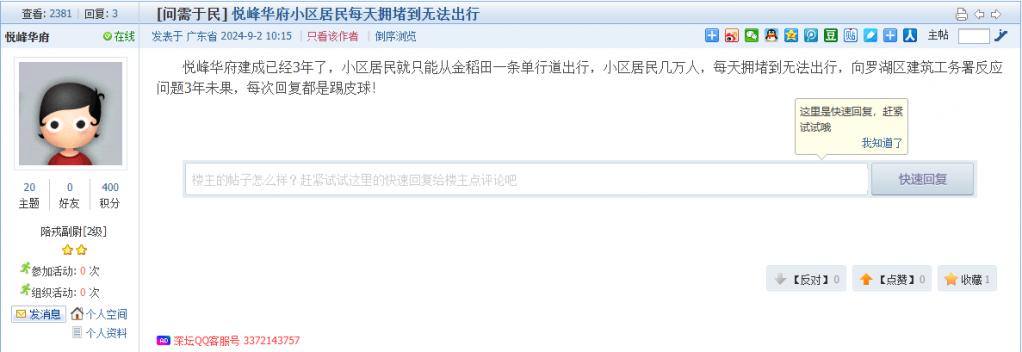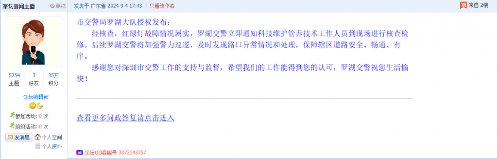 各职能单位如需对网友反映的问题进行回应,可在深圳论坛注册官方账号并通过认证,回帖进行回应。