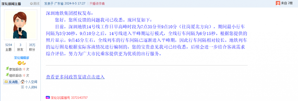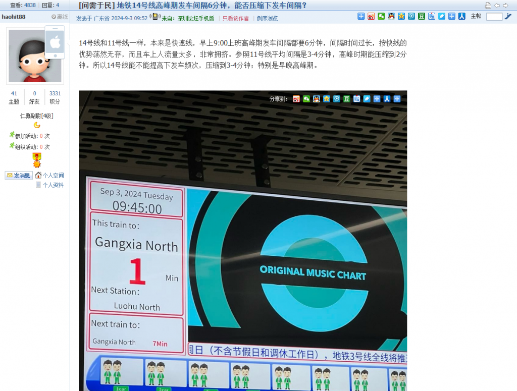 10. 帖文《地铁14号线高峰期发车间隔6分钟,能否压缩下发车间隔?》