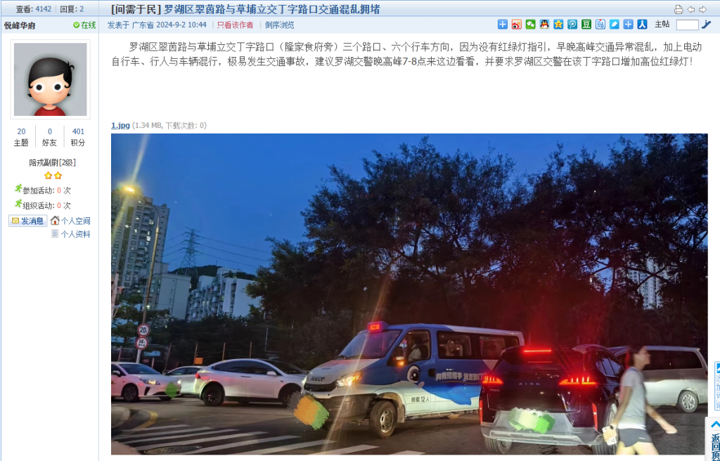 4. 帖文《罗湖区翠茵路与草埔立交丁字路口交通混乱拥堵》