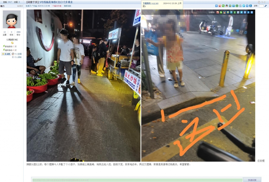 26. 帖文《5号线杨美地铁C出口寸步难走》