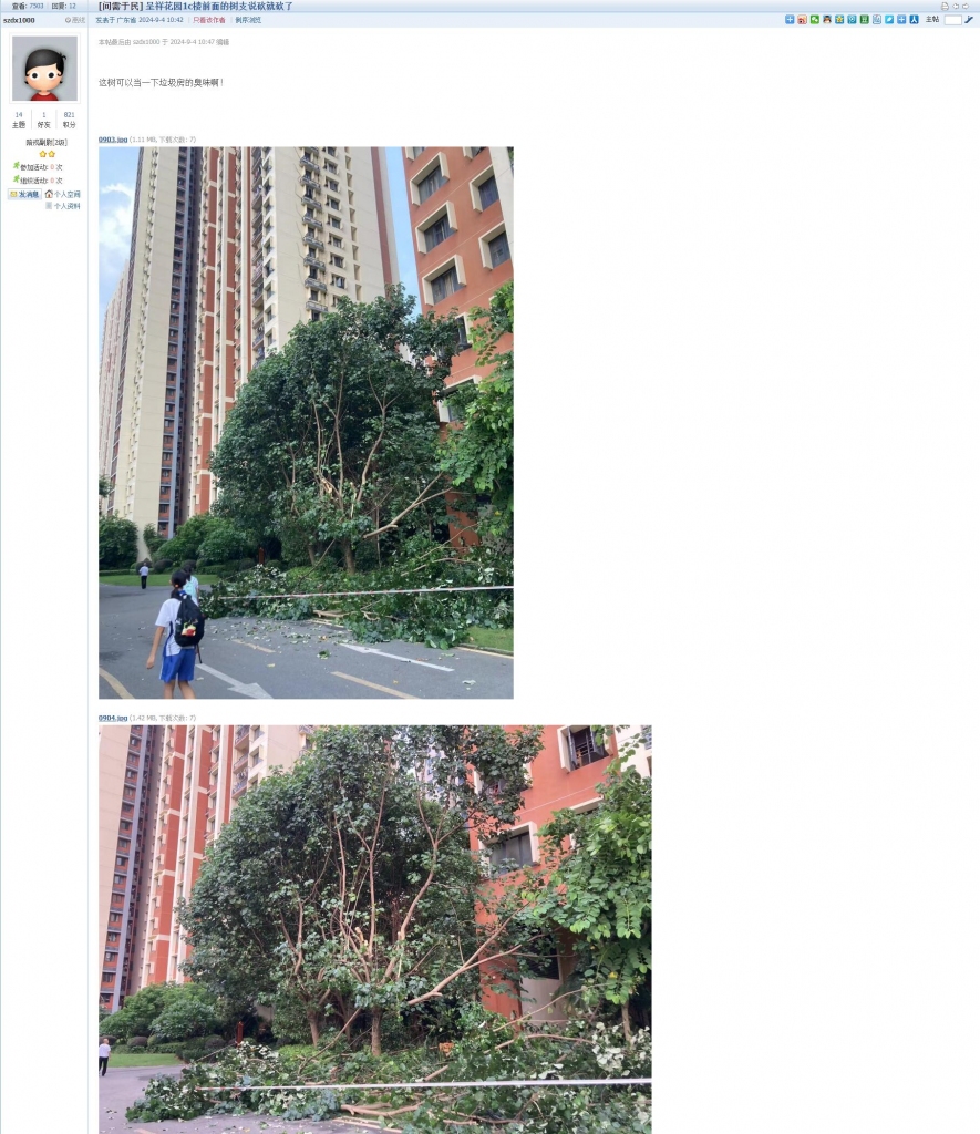 28. 帖文《呈祥花园1c楼前面的树支说砍就砍了》