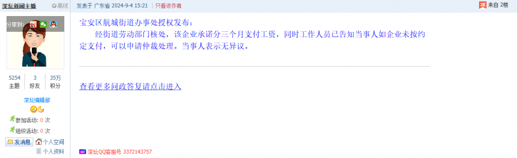 4. 帖文《深圳人社局在民意速办平台上的答复是真实有效的吗》
