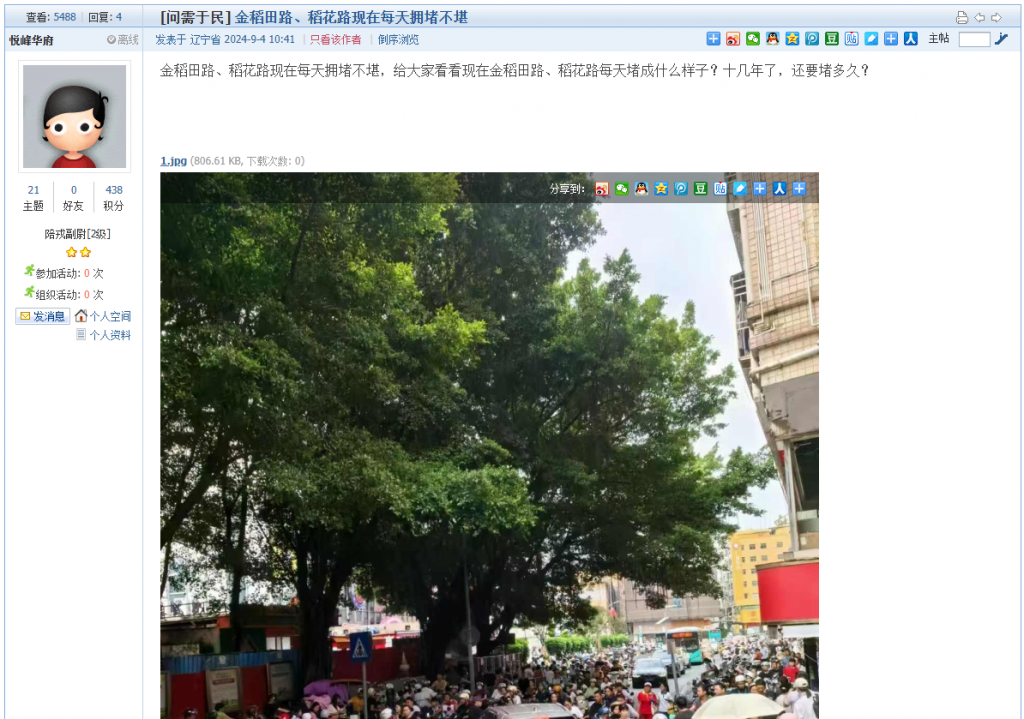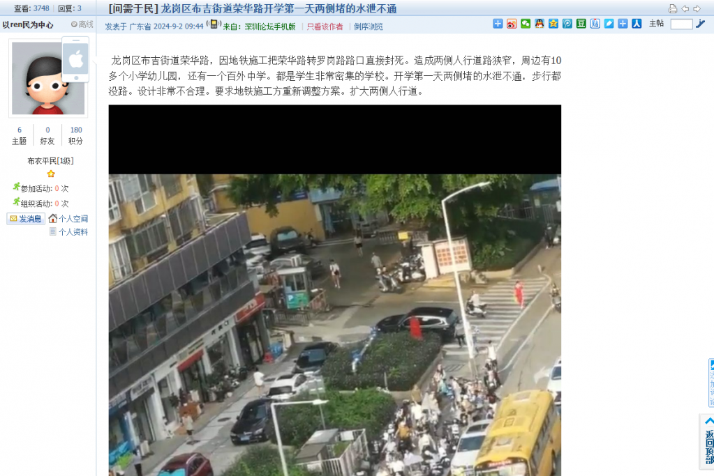 2. 帖文《龙岗区布吉街道荣华路开学第一天两侧堵的水泄不通》