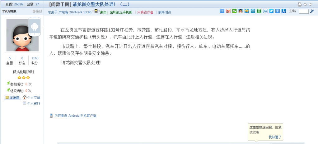 5. 帖文《请龙岗交警大队处理!(二)》