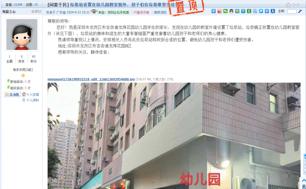 22. 帖文《垃圾站设置在幼儿园教室窗外,孩子们在垃圾堆里生活学习》