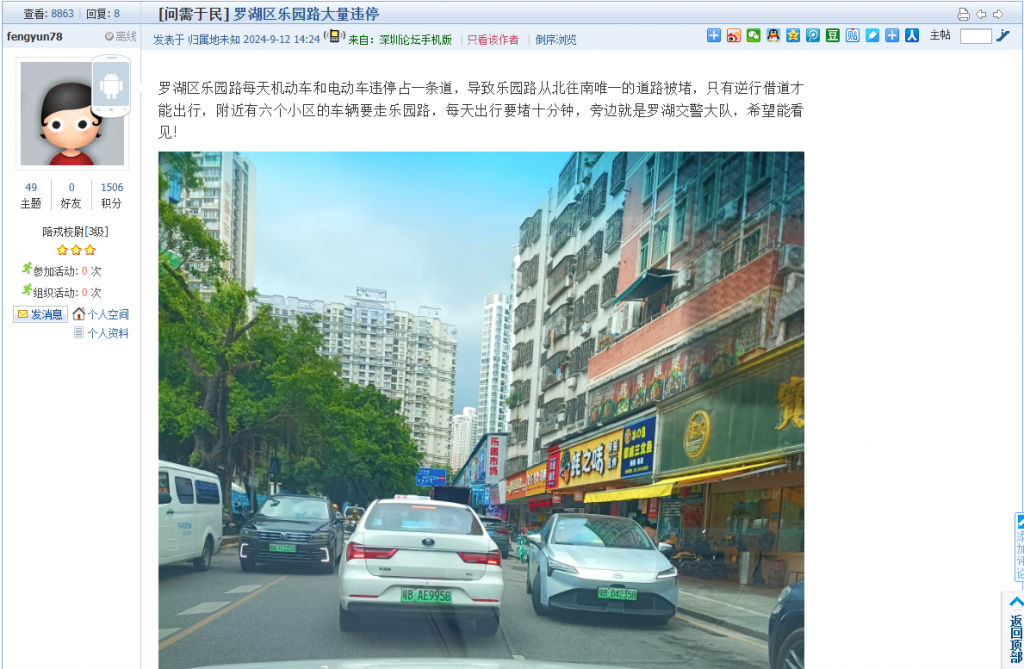 17. 帖文《罗湖区乐园路大量违停》