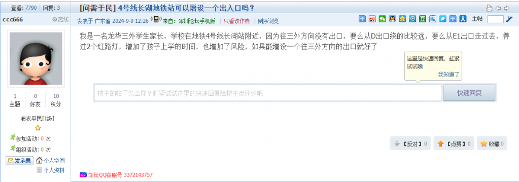 4. 帖文《4号线长湖地铁站可以增设一个出入口吗?》