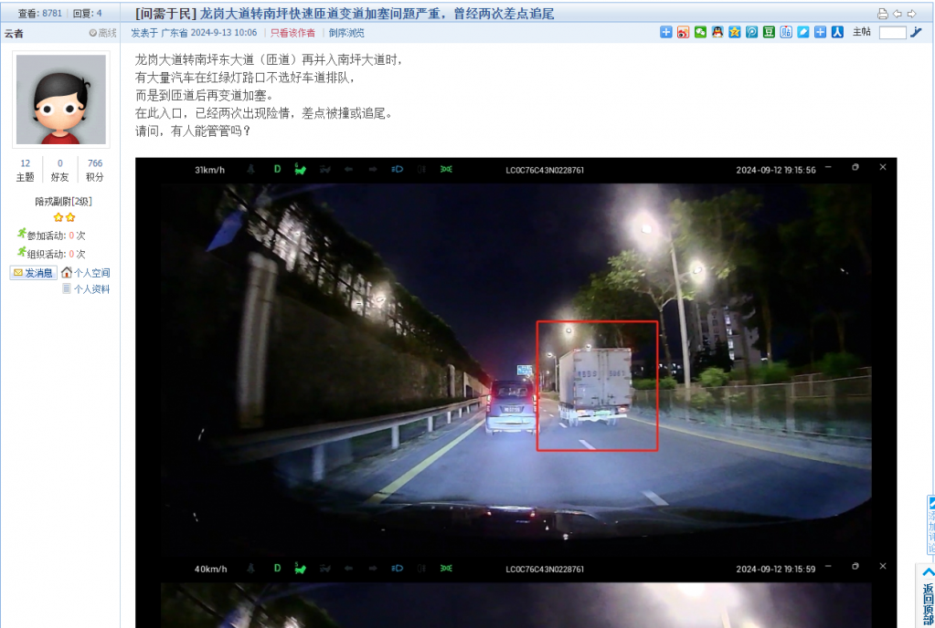41. 帖文《龙岗大道转南坪快速匝道变道加塞问题严重,曾经两次差点追尾》