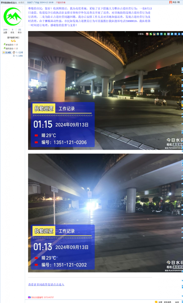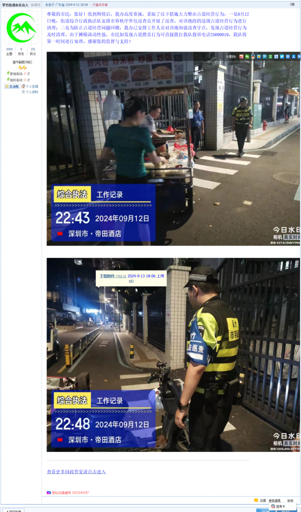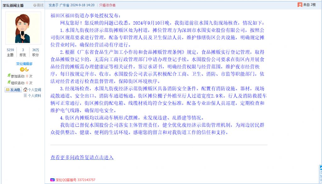 9. 帖文《福田区水围村水围九街的夜市摆摊大都是无证经营》
