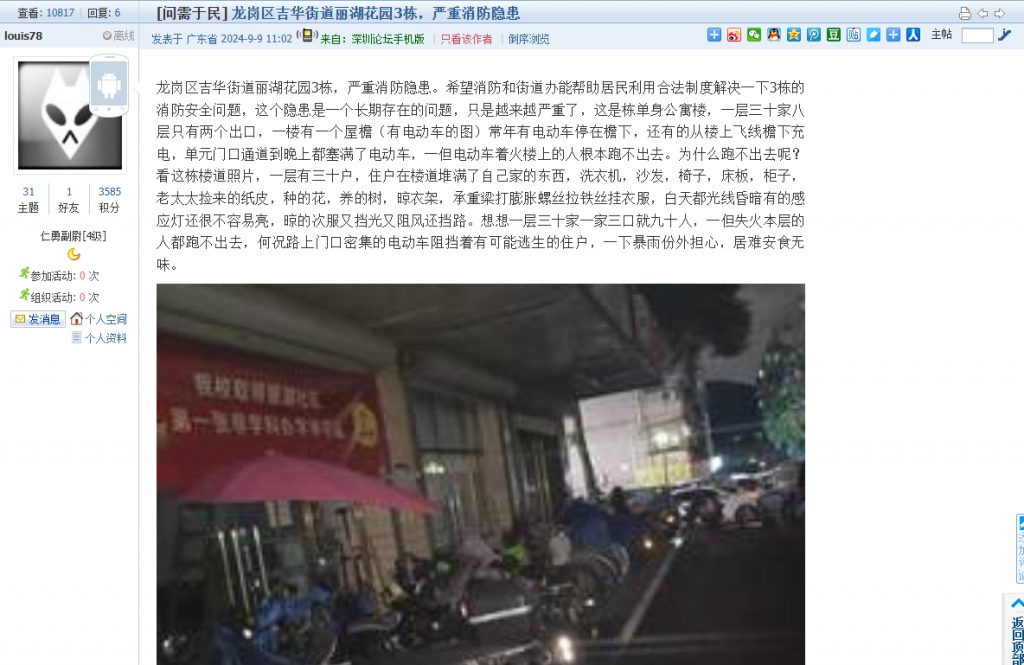 2. 帖文《龙岗区吉华街道丽湖花园3栋,严重消防隐患》