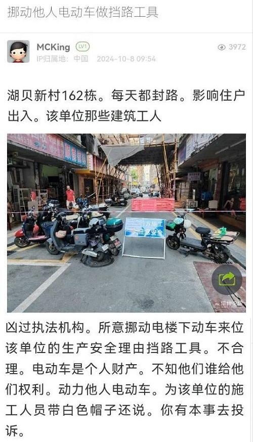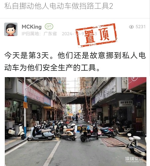 4. 帖文《私自挪动他人电动车做挡路工具2》