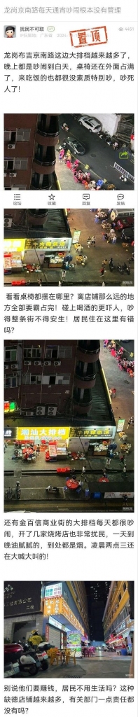 8. 帖文《龙岗京南路每天通宵吵闹根本没有管理》