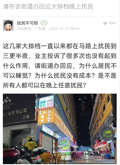 11. 帖文《请布吉街道办回应大排档晚上扰民》