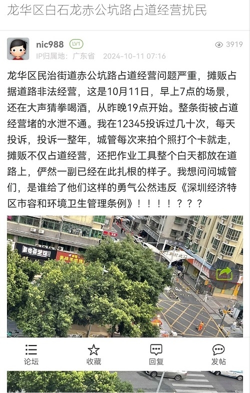 16. 帖文《龙华区白石龙赤公坑路占道经营扰民》