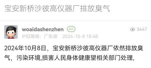 2. 帖文《宝安新桥沙彼高仪器厂排放臭气》
