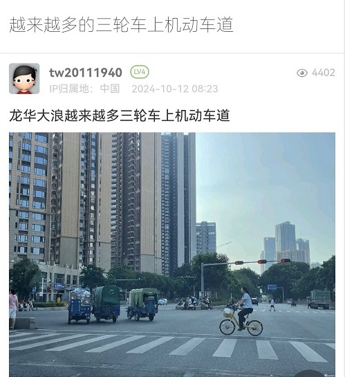 17. 帖文《越来越多的三轮车上机动车道》