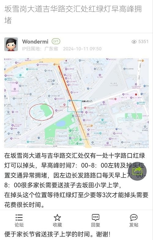 12. 帖文《坂雪岗大道吉华路交汇处红绿灯早高峰拥堵》