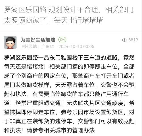7. 帖文《罗湖区乐园路 规划设计不合理,相关部门太照顾商家了,每天出行堵堵堵》