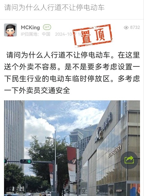 21. 帖文《请问为什么人行道不让停电动车》