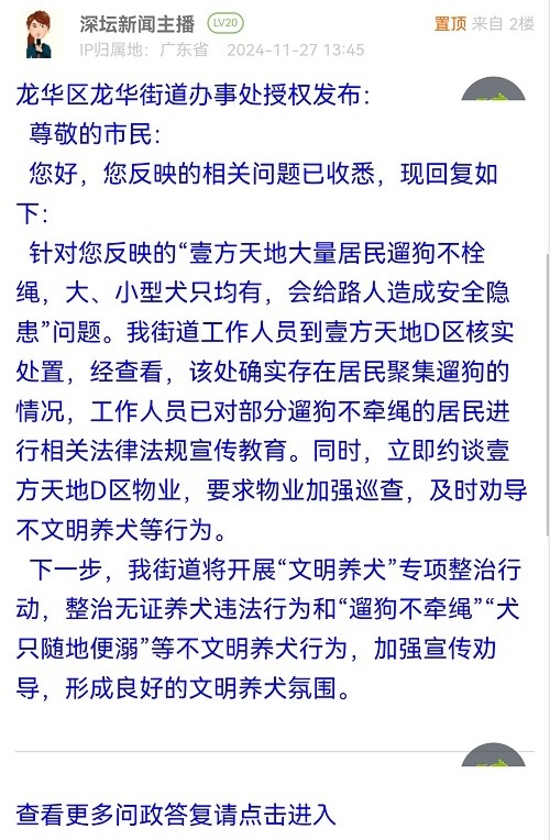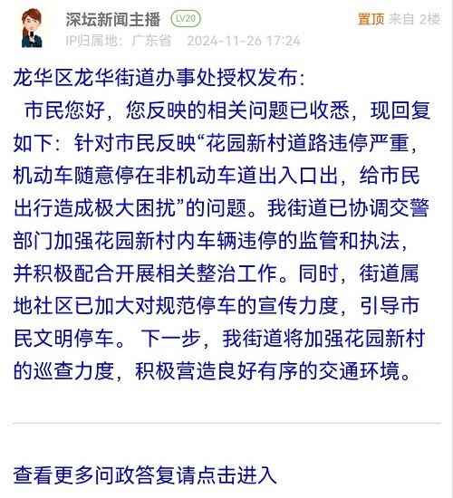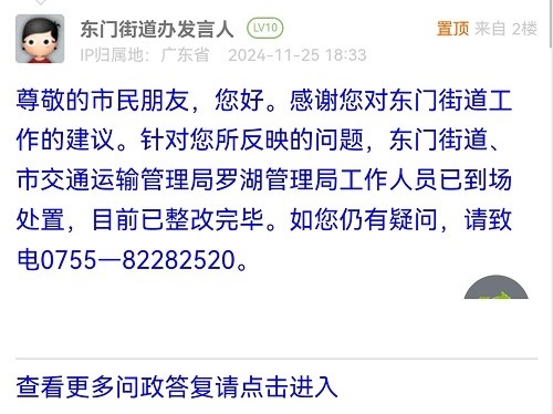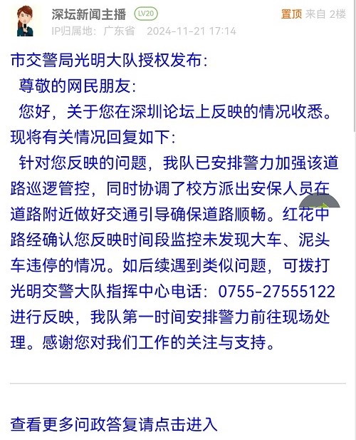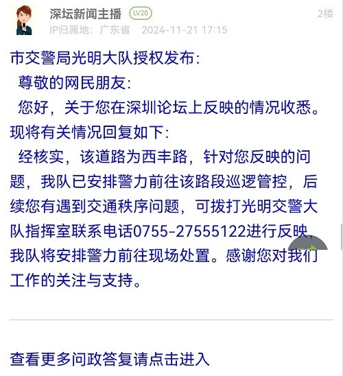 各职能单位如需对网友反映的问题进行回应,可在深圳论坛注册官方账号并通过认证,回帖进行回应。