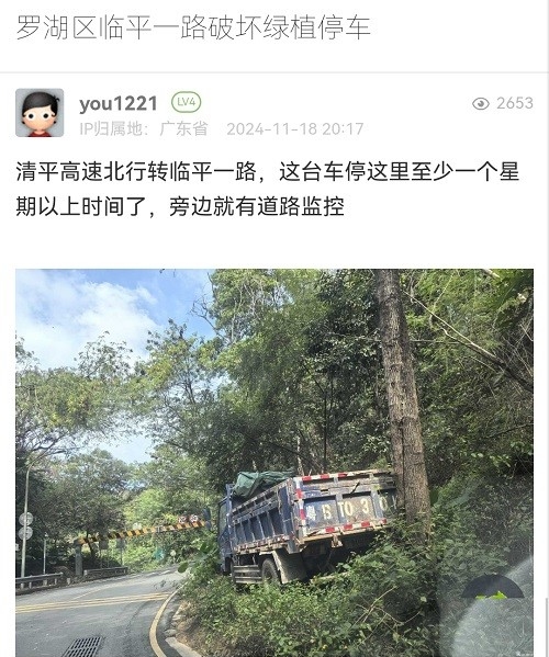 5. 帖文《罗湖区临平一路破坏绿植停车》