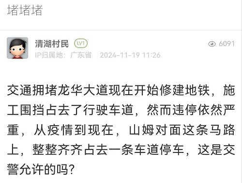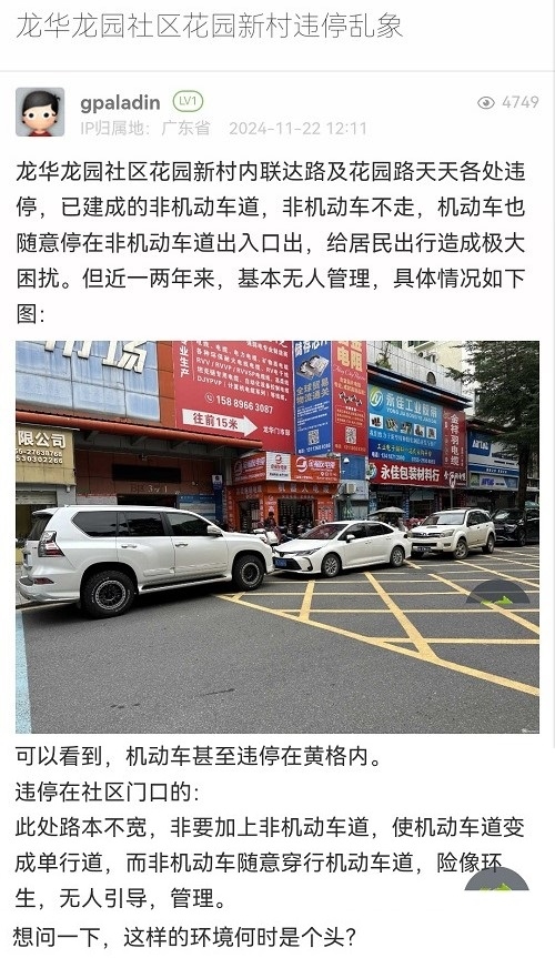 15. 帖文《龙华龙园社区花园新村违停乱象》
