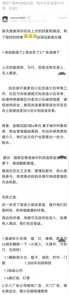 16. 帖文《福田下梅林金梅花园,城中村改造提升环境,后续2》
