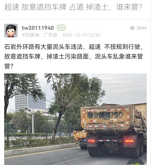 21. 帖文《超速 故意遮挡车牌 占道 掉渣土,谁来管?》