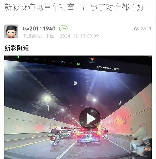 9. 帖文《新彩隧道电单车乱窜,出事了对谁都不好》