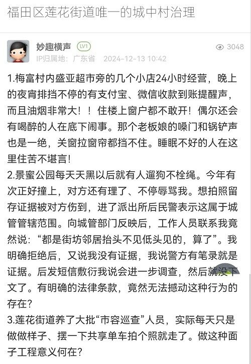 12. 帖文《福田区莲花街道唯一的城中村治理》