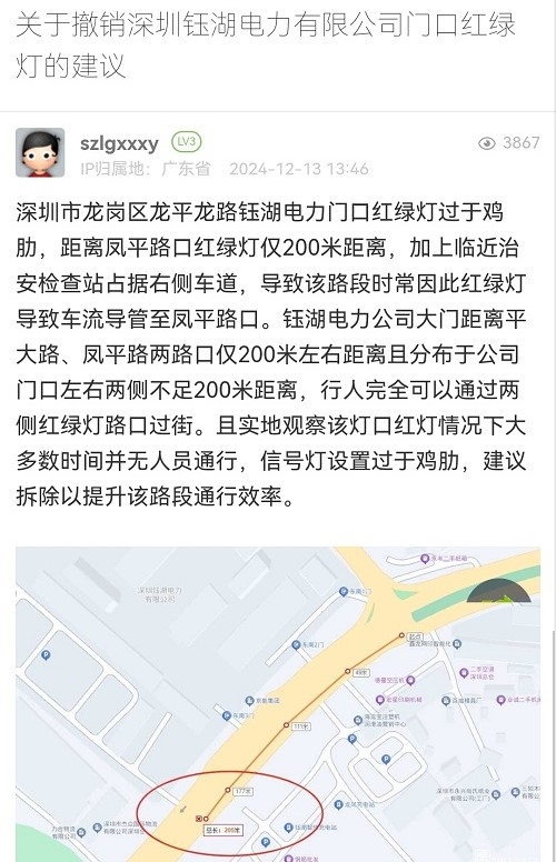 10. 帖文《关于撤销深圳钰湖电力有限公司门口红绿灯的建议》