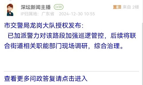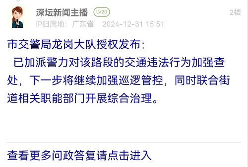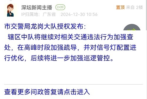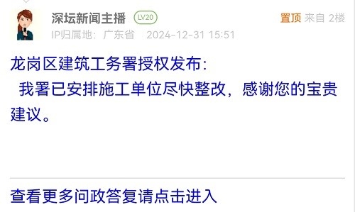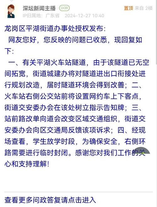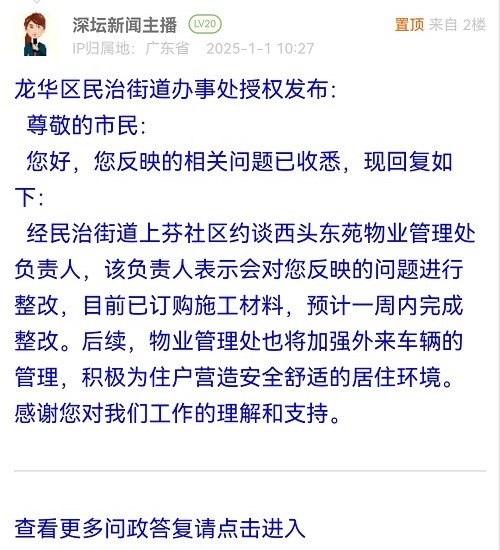 各职能单位如需对网友反映的问题进行回应,可在深圳论坛注册官方账号并通过认证,回帖进行回应。