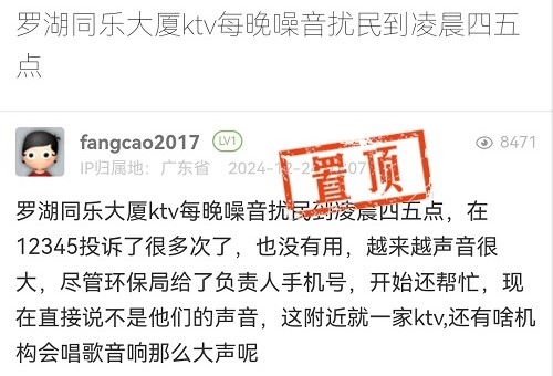 8. 帖文《罗湖同乐大厦ktv每晚噪音扰民到凌晨四五点》