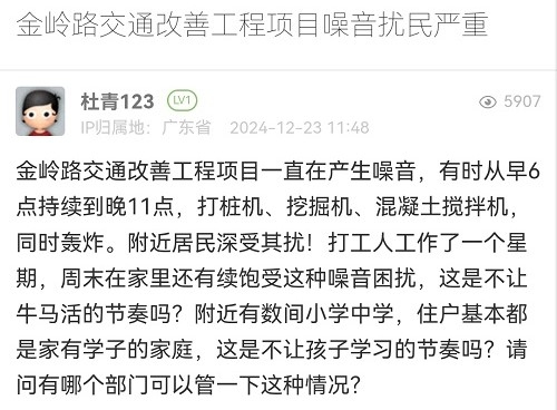 2. 帖文《金岭路交通改善工程项目噪音扰民严重》