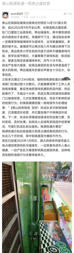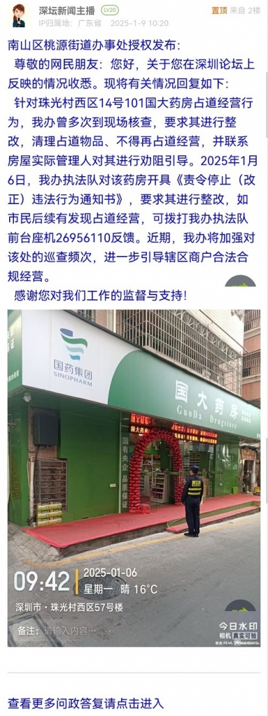 28. 帖文《南山桃源街道一药房占道经营》