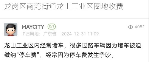 8. 帖文《龙岗区南湾街道龙山工业区圈地收费》