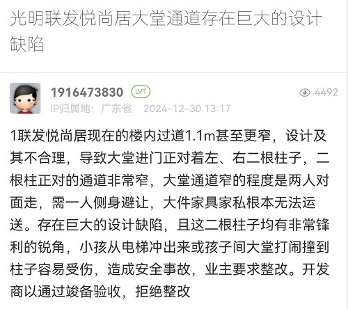 5. 帖文《光明联发悦尚居大堂通道存在巨大的设计缺陷》