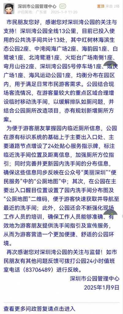 29. 帖文《深圳湾观海长廊严重缺乏公众洗手间!》