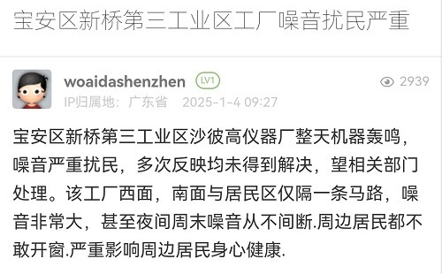 22. 帖文《宝安区新桥第三工业区工厂噪音扰民严重》