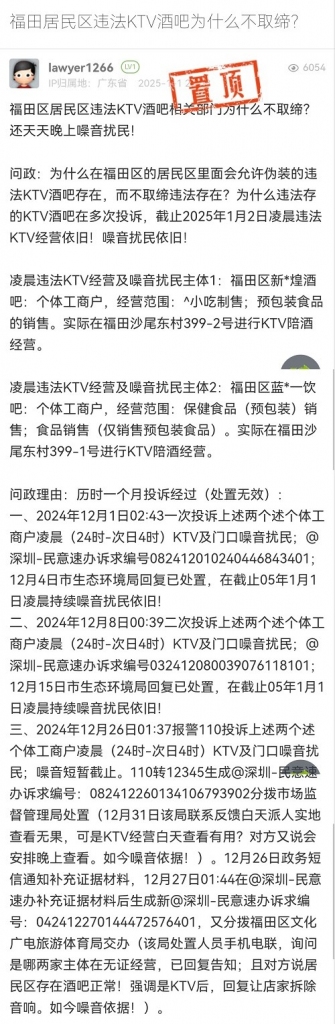 15. 帖文《福田居民区违法KTV酒吧为什么不取缔?》