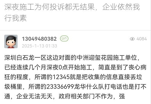 1. 帖文《深夜施工为何投诉都无结果,企业依然我行我素》