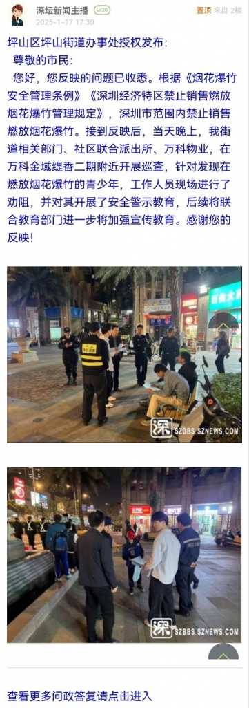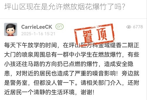 6. 帖文《坪山区现在是允许燃放烟花爆竹了吗?》