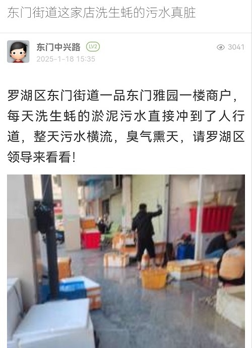 17. 帖文《东门街道这家店洗生蚝的污水真脏》