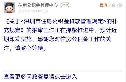 《关于<深圳市住房公积金贷款管理规定>的补充规定》的报审工作正在抓紧推进中,预计近期印发实施,感谢您对住房公积金工作的关注,请耐心等待。