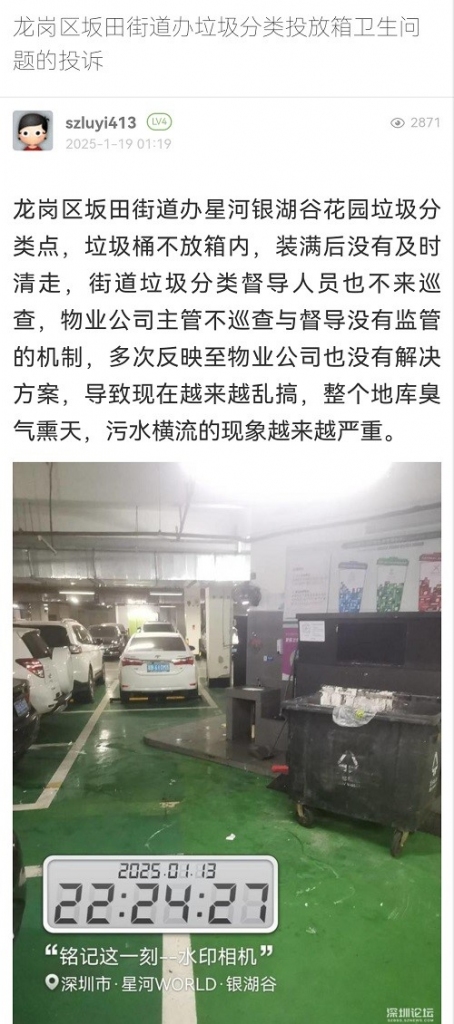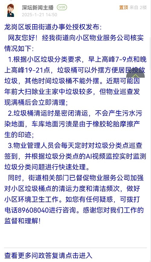 14. 帖文《龙岗区坂田街道办垃圾分类投放箱卫生问题的投诉》