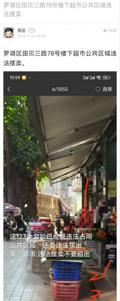 8. 帖文《罗湖区田贝三路78号楼下超市公共区域违法摆卖》