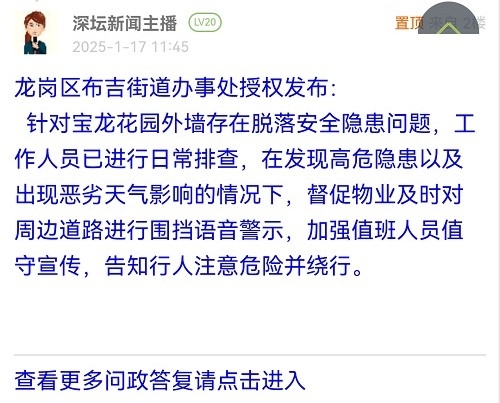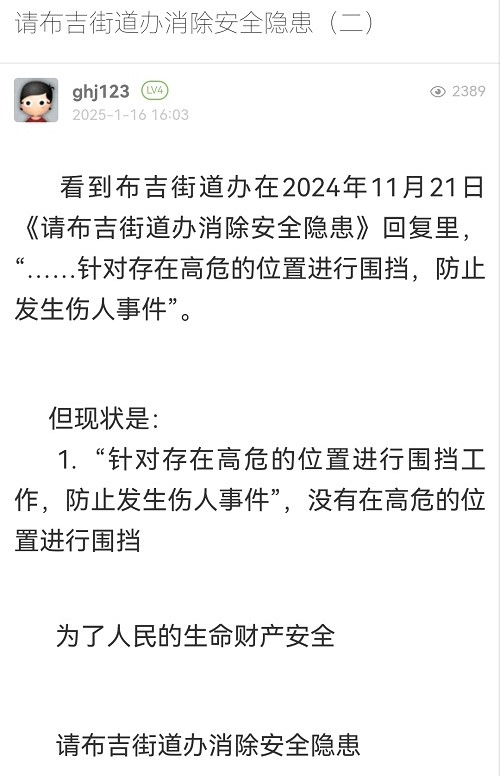 7. 帖文《请布吉街道办消除安全隐患(二)》