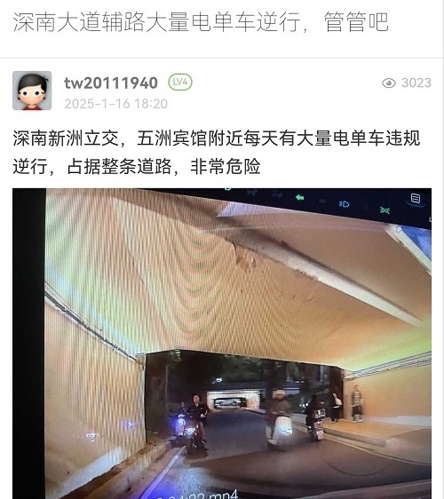 11. 帖文《深南大道辅路大量电单车逆行,管管吧》